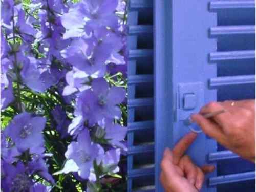 Ich streiche meine Fensterläden glockenblumenblau.