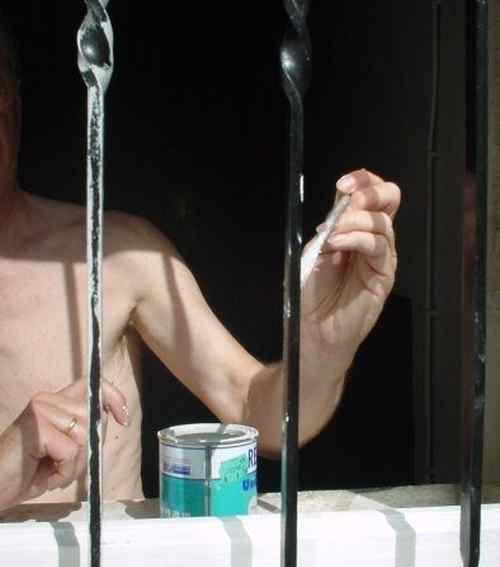 Ich streiche das Fenstergitter